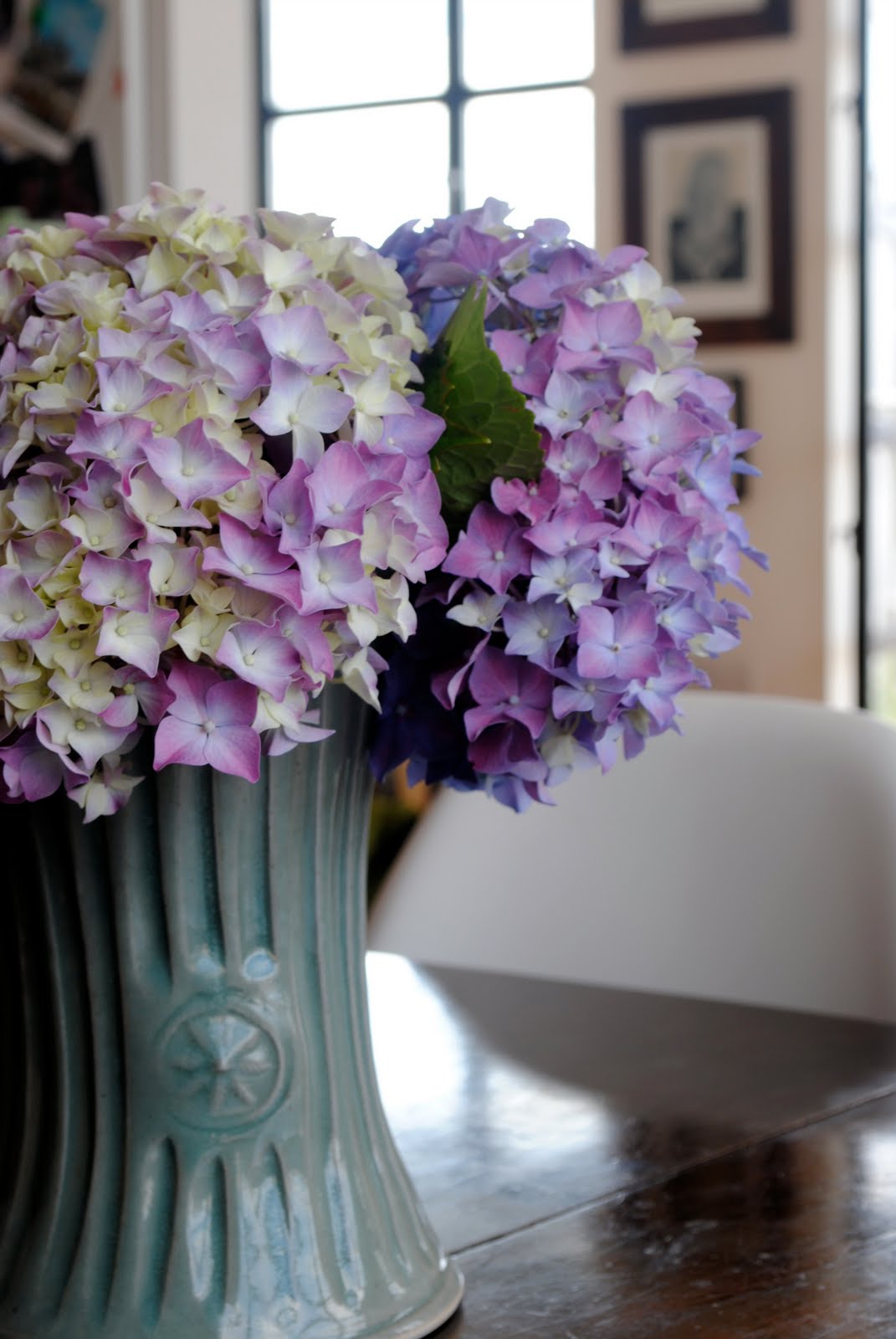 A few more snipped hydrangeas in the loveliest Scottish vase my dear friend Suz gave me for my birthday this year.